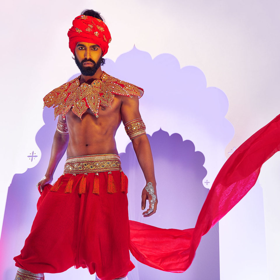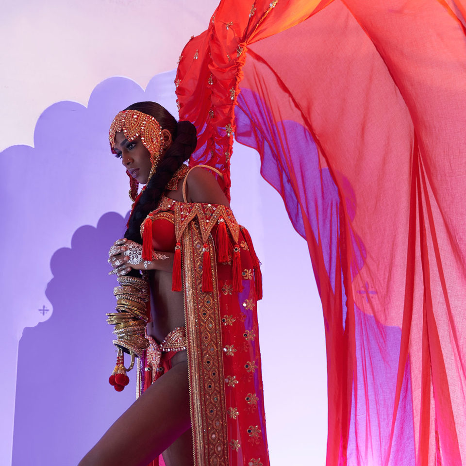 Option 1: Includes bodywear (bikini), headpiece, jewellery & cape