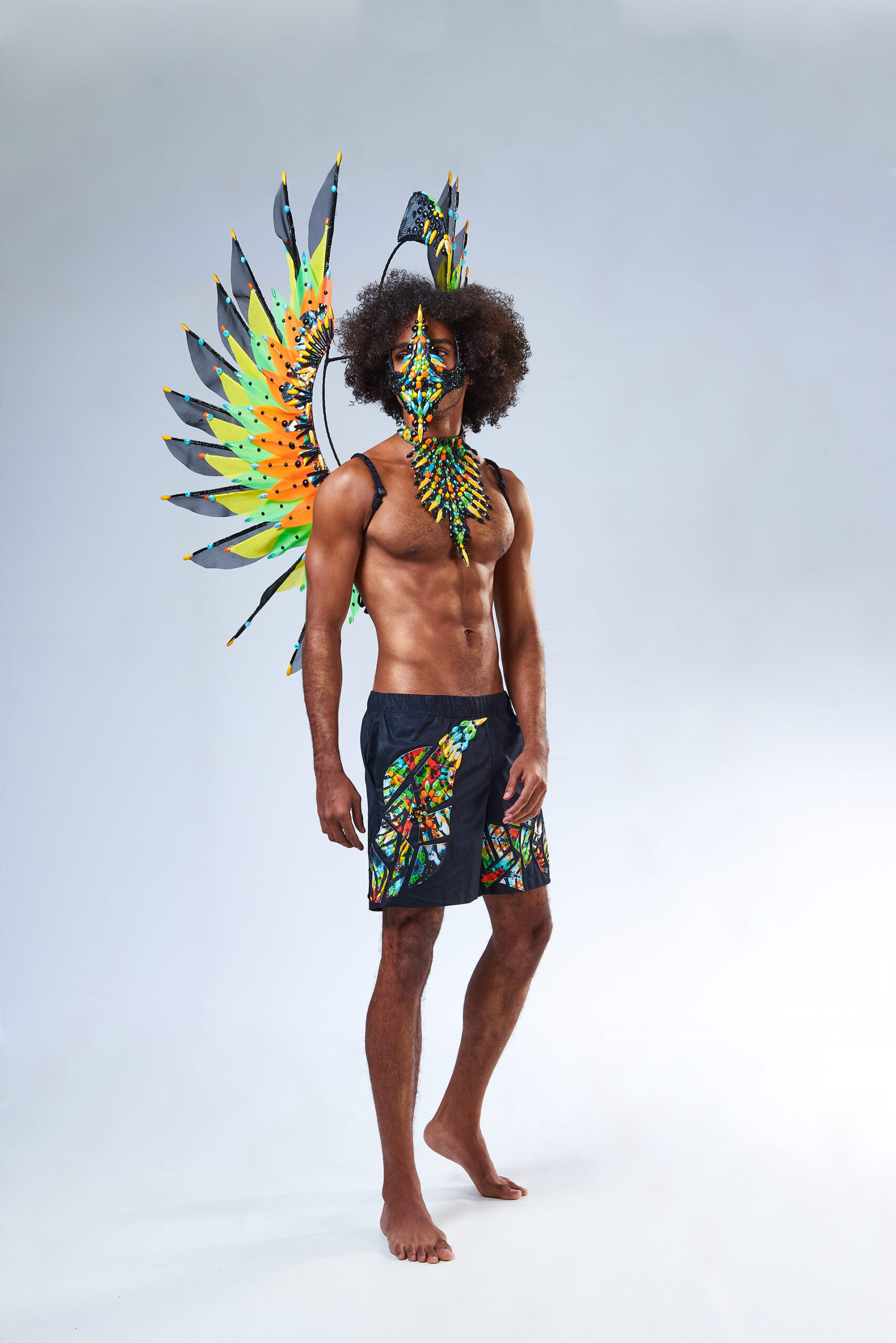 Includes Head Piece, Earrings, Neck Piece, Decorated Fauxkini with Fall Pieces and Bottom Piece
